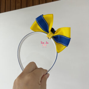 Tiara laço em pé (amarelo e azul) com coração