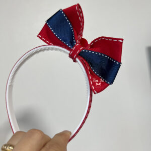 Laço cruzado (P) vermelho e branco com pompom de pelinho